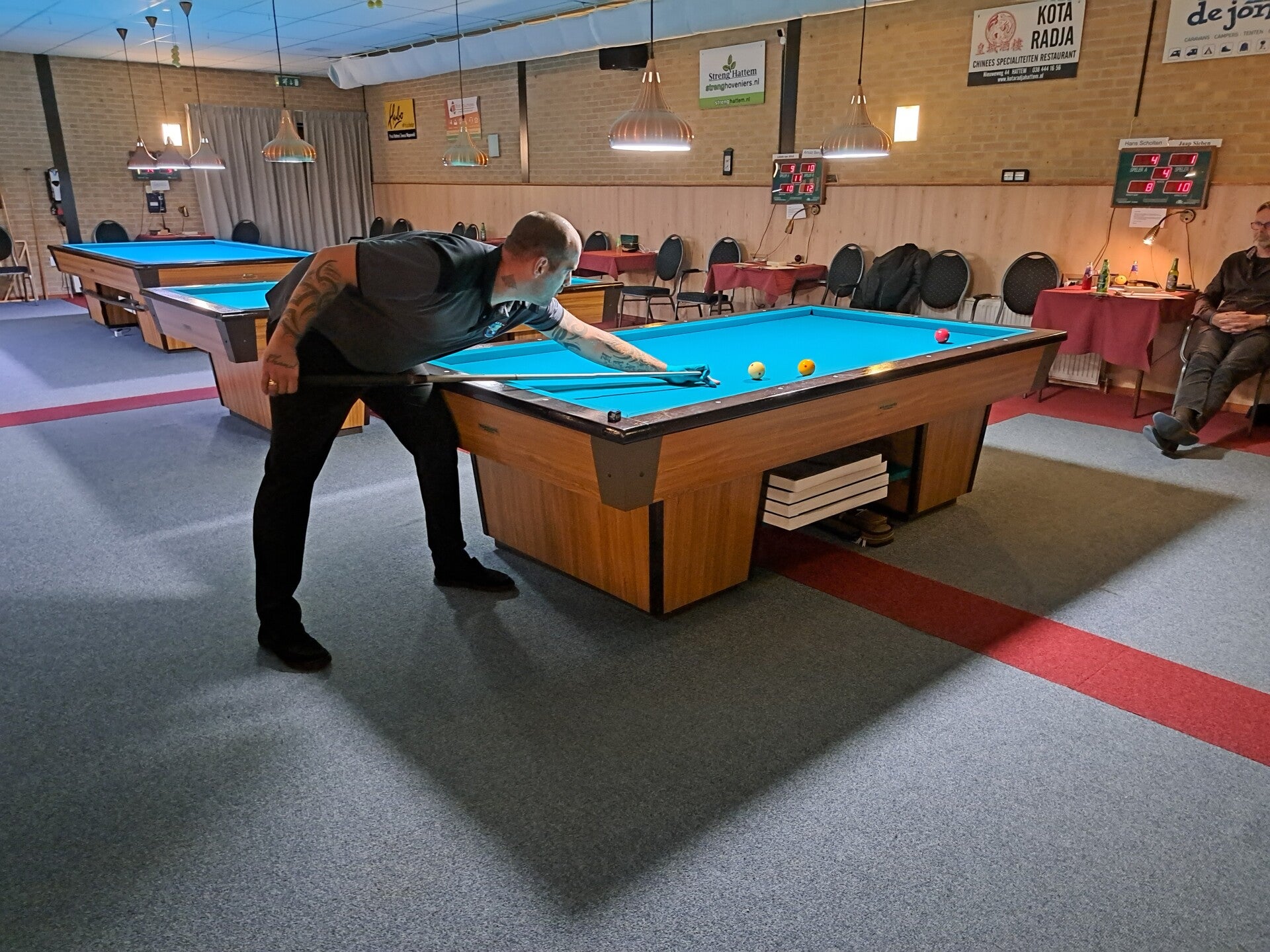 In onze prachtige biljartzaal aan de Veenburgerweg 15 te Hattem - waar alle biljarts recent zijn gerenoveerd - streden 32 deelnemers op de kleine tafel en 17 op de grote tafel. Veel nieuwe gezichten uit het noorden en oosten van ons land waren te verwelkomen. Een teken dat het toernooi erg in trek is in wijde omtrek.